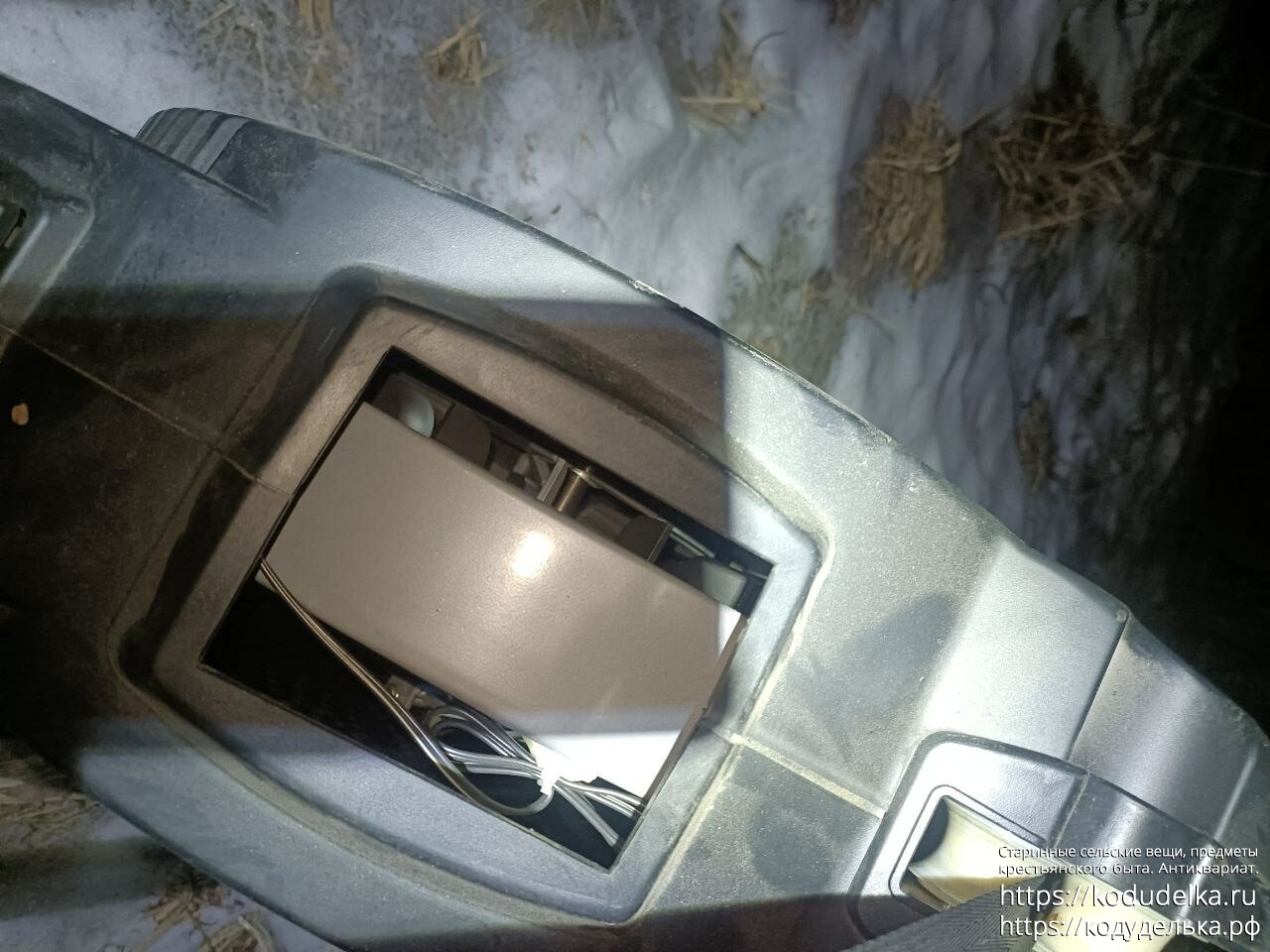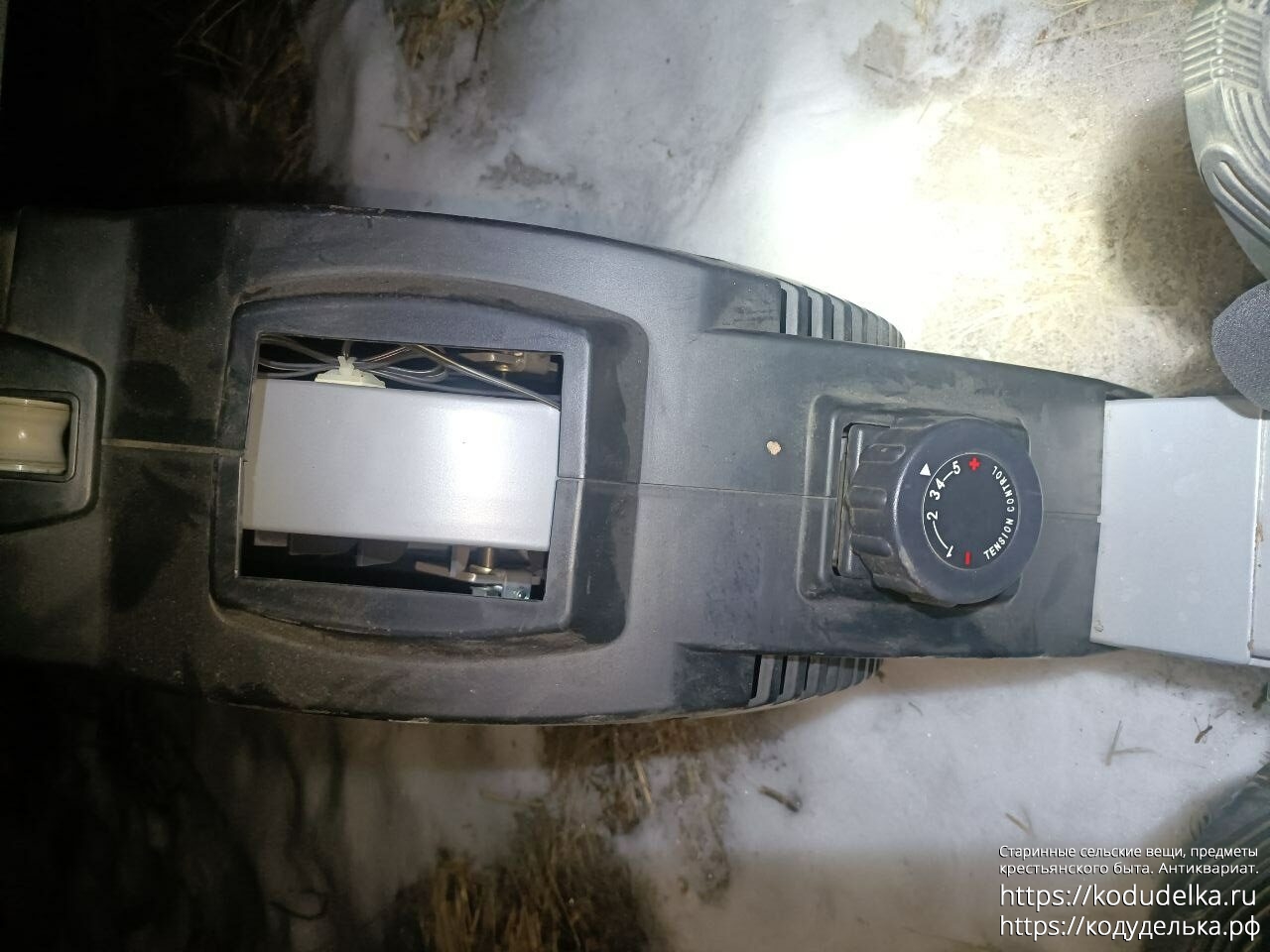 — Еще торчат какие-то провода, для чего они — непонятно, входа для внешнего питалова не нашёл (при беглом осмотре). Возможно это — чтобы соединять его с инетом и компом, чтобы заниматься он-лайн-греблей с соперниками. Ввиду отсутствия света на даче протестить этот момент не могу (зарядных устройств, если они предусмотрены, для него нет, в наличии только то, что на фото).