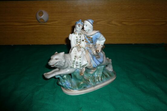 Статуэтка «Иван-царевич и Елена Прекрасная на сером волке» старая Гжель СКАЗКИ Скульптор Азарова Л.П. Турыгинский фарфоровый завод артели «Художественная керамика»…