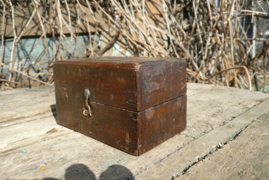 Старинная шкатулка. Размеры (Д/Ш/В): 15/9/8.7 см. Запирается на петельку (пробой) и крючок, и тот и то — латунные. Петли на…
