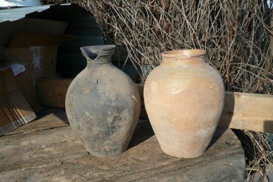 Большие фактурные кувшины (вазы) из светлой и чёрной глины. 1) У светлого есть скол по ободку горловины, с обратной стороны…