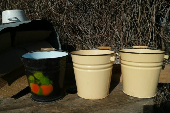 Эмалированные вёдра СССР (?), на 10 литров, без крышки У цветного есть 1 небольшой скол эмали на 5 см. вниз…