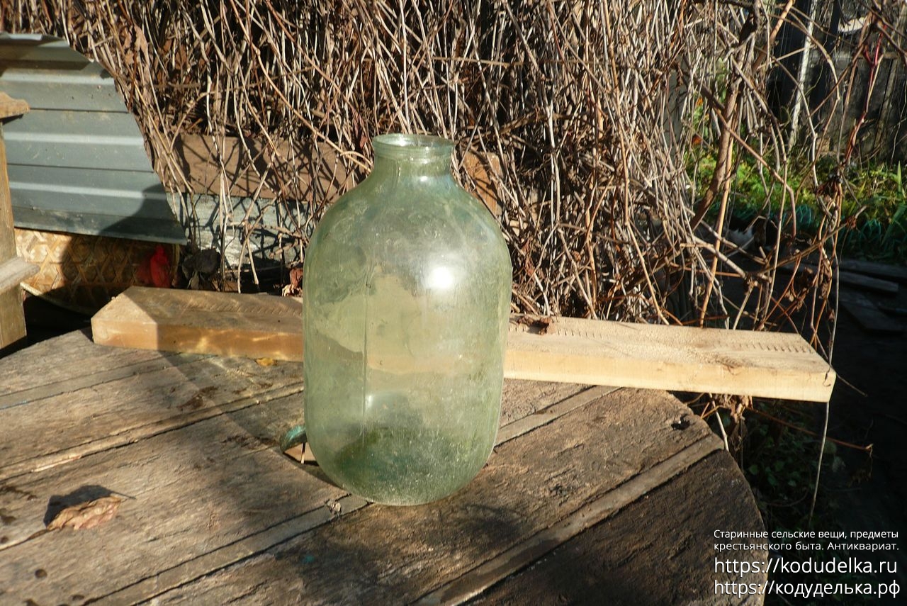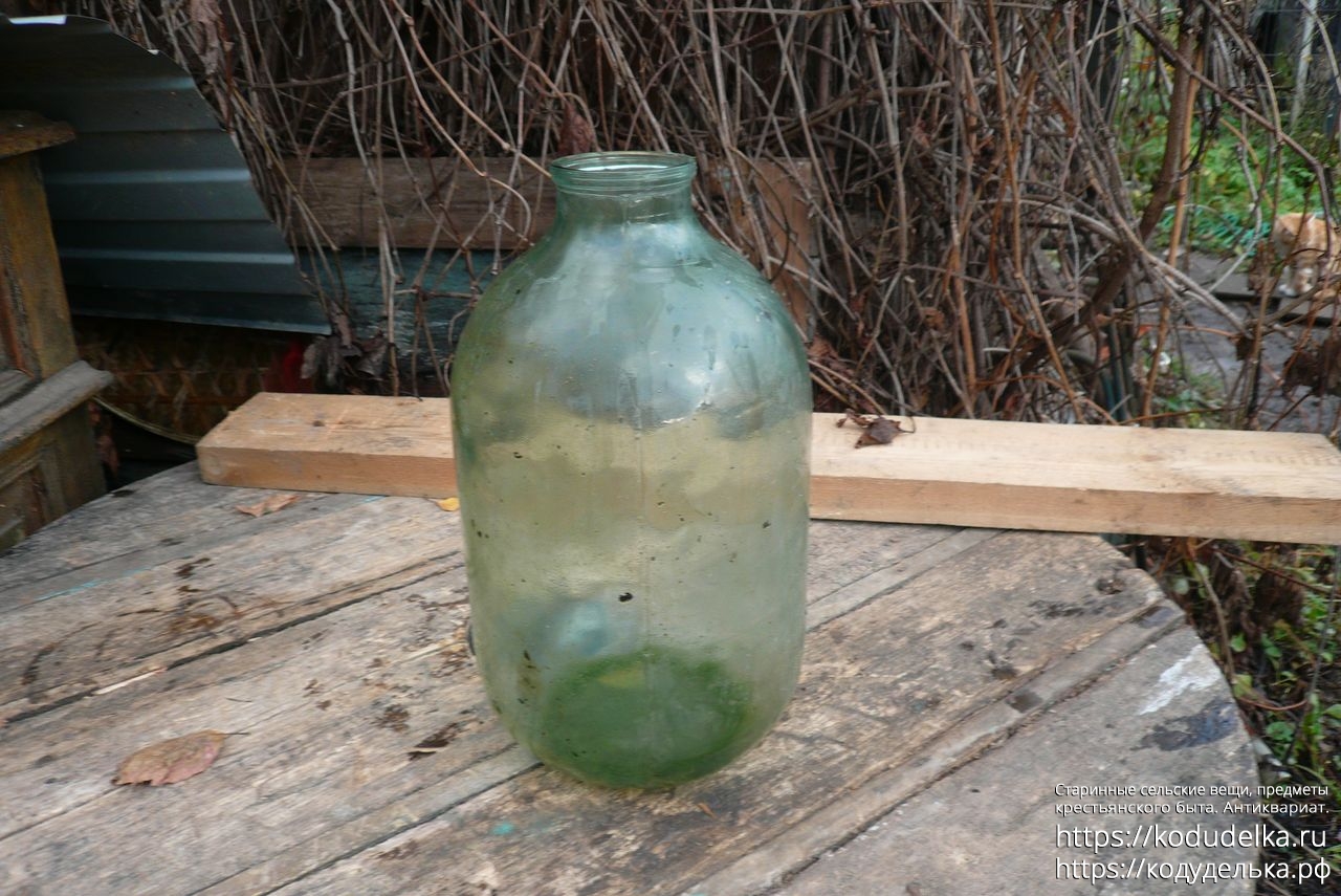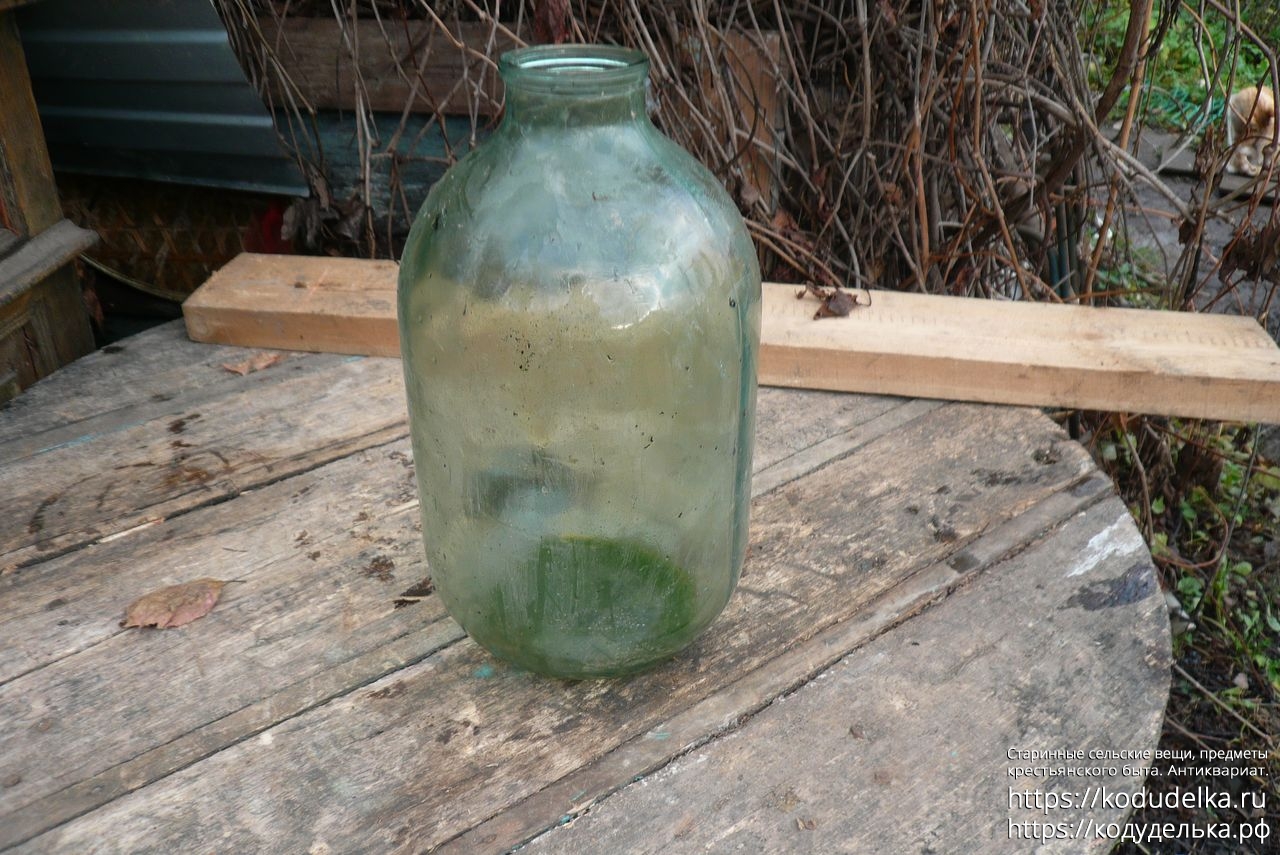 Долгое время мне казалось, что у неё несерьезный объём — 5-7 литров — поэтому она несколько лет валялась под открытым небом. Поэтому внутри есть следы от стоялой воды, банка не вымыта.