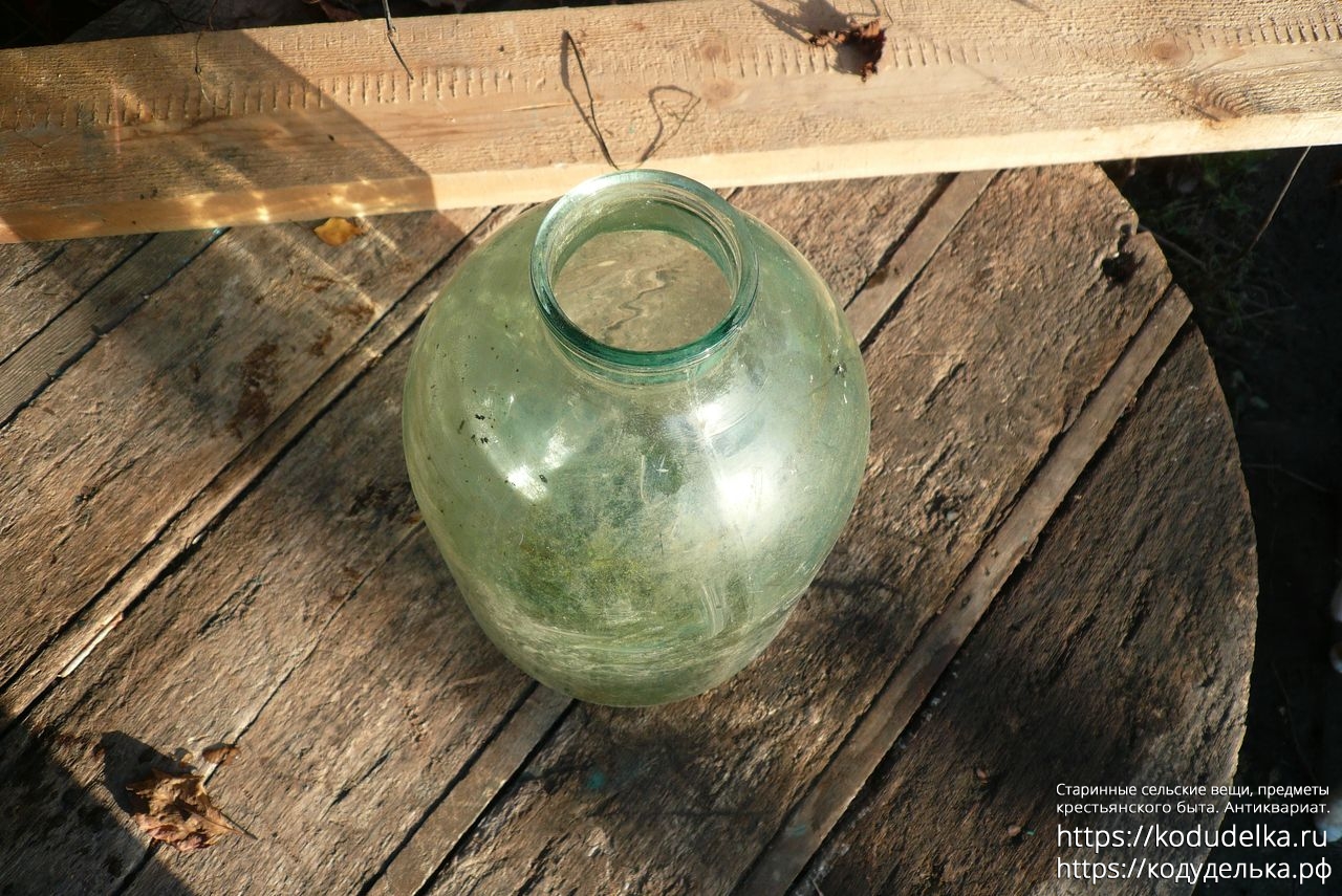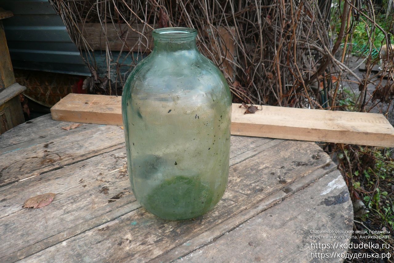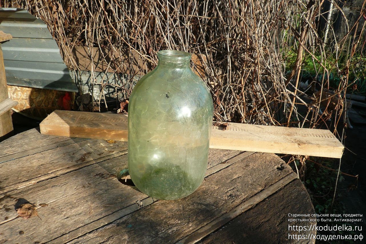 Долгое время мне казалось, что у неё несерьезный объём — 5-7 литров — поэтому она несколько лет валялась под открытым небом. Поэтому внутри есть следы от стоялой воды, банка не вымыта.