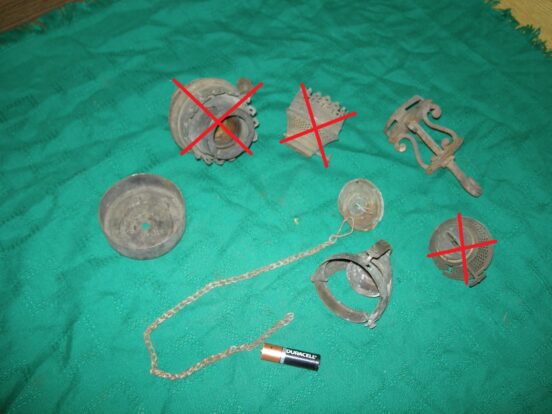 1) Деталь от люстры для керосиновой лампы — 200 руб. (металл) 2) Низ от горелки керосиновой лампы (треснутый, без короны,…