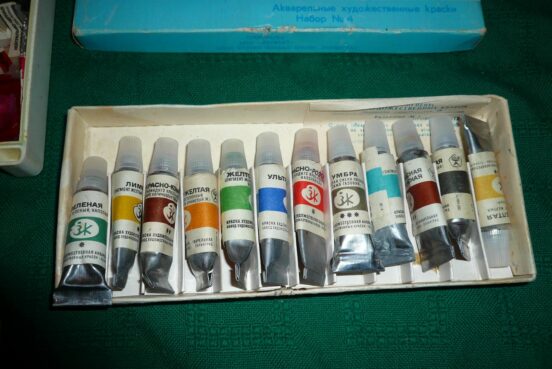Акварельные художественные краски Нева набор №4 12 тюбиков Союзкраска ЛНПО «Пигмент» Завод художественных красок Ленинград Цена — 1000 руб.