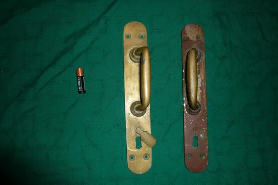 Старинные дверные ручки, латунь (? не магнитятся, кроме круглых крепёжных гаек с оборота, они из металла и магнитятся). Клеймо, из…