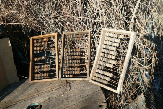 Большие советские счёты, неполные и/или с дефектами. Слева направо: Счёты неполные (утрачена 1 железная ось полностью со всеми костяшками и…