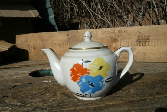 Фарфоровый (?) заварочный чайник ДФЗ, Вербилки, 2 сорт Нечастый рисунок — яблоки (фрукты ?). При первичном осмотре — без сколов…