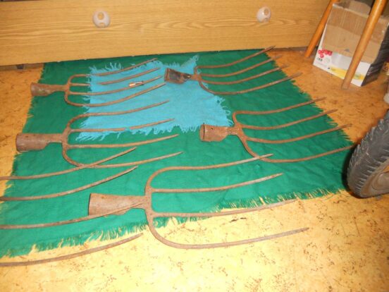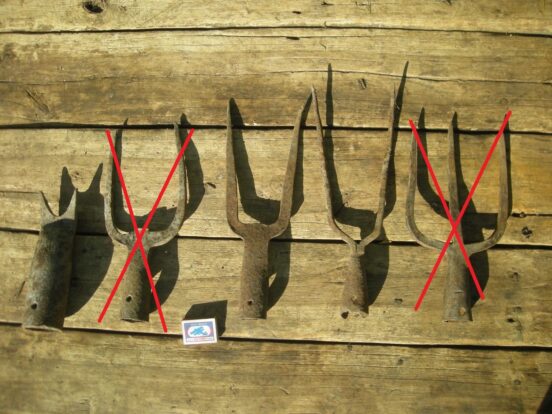 Загнутые вилы (пытались сделать копалку, мотыгу?) — 200 руб. Вилы с двумя рогами (двумя удаленными средними рогами) — 200 руб….