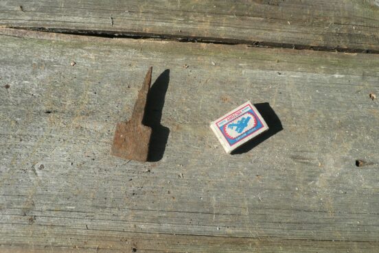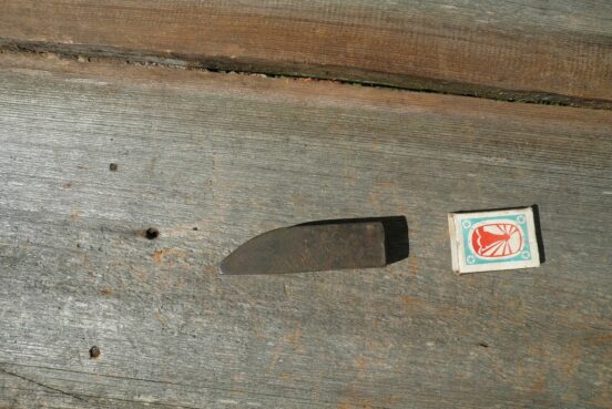 Бабка для отбивки косы, вместе с деревянными козлами (лавочкой, скамейкой), на которой сидит отбивальщик. Бабка сделана из обрезанного напильника. Размеры…