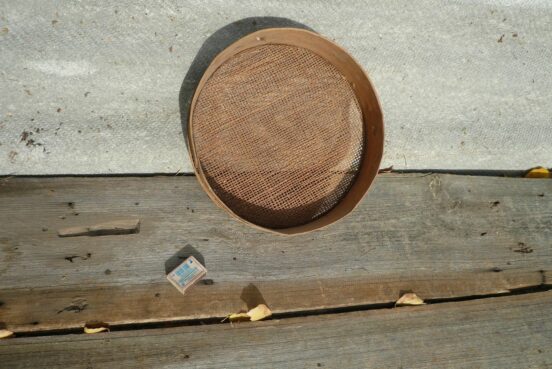Решетка, решето для просеивания песка, металл (жесть?), мы ей играли в детстве в песочнице, бабушка с дедушкой возвращали ее себе,…
