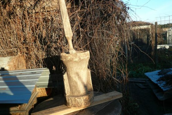 Редкая ступа для толчения конопли, на всю деревню одна попалась. Бабы толкли конопляные стебли в этой ступе в 5-6 пехтилей….