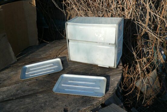 Фанерная настенная аптечка советских времён, для ванных комнат и не только. Два отделения — большое, с двумя полочками внутри, и…