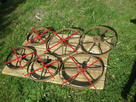 Колеса от тачек, тачанок, конной бороны, сеялки, косилки, конных грабель или других видов повозок на конной тяге, Возможно — от…