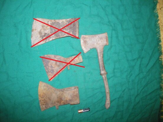 Топор большой с трещиной с одной стороны — продан. Топор малый, без клейма, с трещиной на обухе (предположительно немецкий) —…
