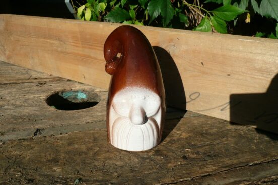 Копилка (?) керамическая фигурка гнома гномика. Против этой версии (про копилку) говорит отсутствие ровного круглого отверстия внизу (резинка-затычка могла быть…