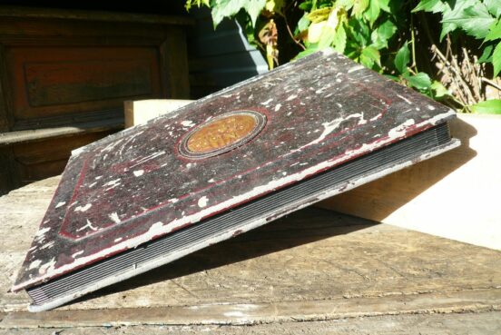 Большая «книга» — возможно, это фотоальбом, визуально оформлена под старинный фолиант. (хотя никаких кармашков из целофана, куда можно было бы…