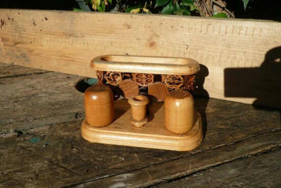 Набор из солонки и перечницы, с подставкой. Возможно, современные.