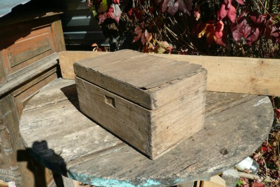 Старинный сундучок, малый. Неокрашен. Размеры: 39/23.5/20 см. (высота дана с учётом ножек) Бока корпуса и крышки — массив (пазы входят…