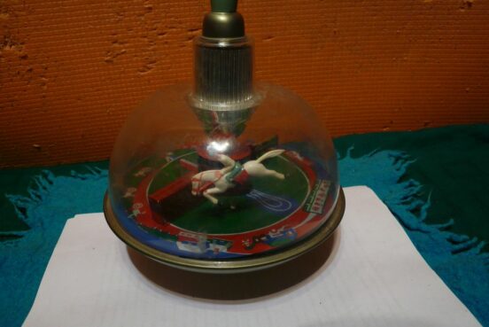 Юла, волчок СССР, интерактивная — со всадником (лошадь, конь с наездником, жокеем), который перепрыгивает через барьер. Механизм рабочий: нажимается до…