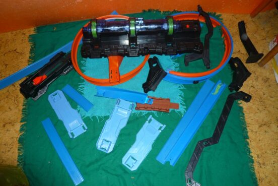 1) Пусковой механизм из набора треков Hot Wheels Corkscrew Crash Track Set — точно рабочий, всё крутится. 2) По остальной…