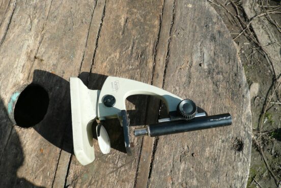 Советский микроскоп Юннат-1, неполный. Отсутствует (если сравнивать с фотографиями комплектных в интернете) как минимум пластмассовая крышка сверху на трубку (очевидно,…