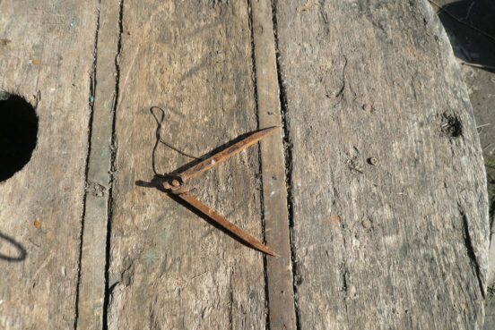 Разметочный (?) циркуль, он же кронциркуль. Длина — 12.5 см. Ржавенький, но крутится. Нитка возможно намотана «чтобы не было люфта»….