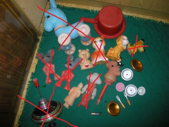 Доподлинно неизвестно, какие из представленных игрушек советские, а какие нет — лежали вперемешку с современными. Никаких шильдиков не обнаружено. Белый…