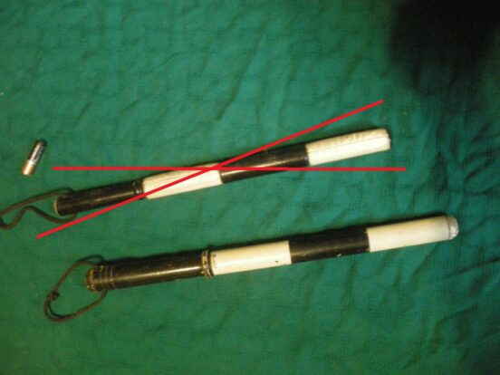 Полосатый деревянный жезл регулировщика советских времён. Правый (нижний) — точно советский, все покрытие сделано краской. Цена за полностью деревянный —…