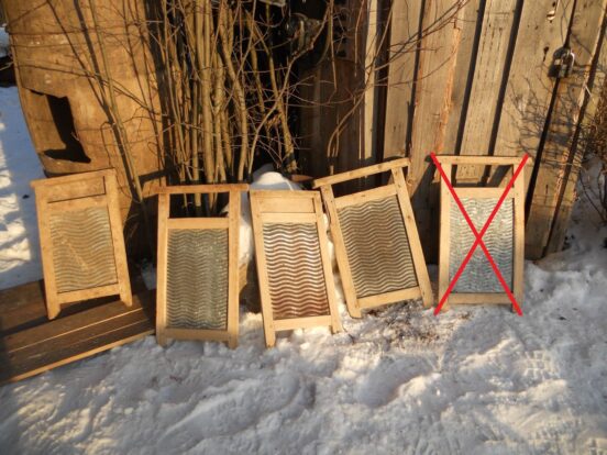 Советские стиральные доски, ручные, «Волна» и похожие. Осталась только ржавая, крайняя слева.