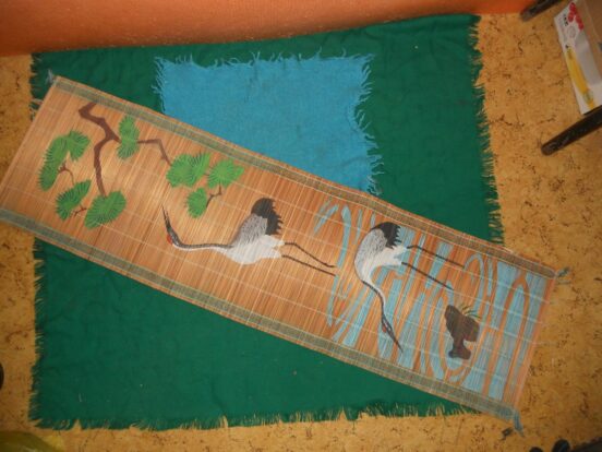 Бамбуковая соломка времён СССР, с китайскими или японскими (в целом восточными, азиатскими) мотивами. Целая. Размеры (Ш/В): 105/30 см.