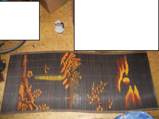 Бамбуковая соломка времён СССР, с китайскими или японскими (в целом восточными, азиатскими) мотивами. Целая. Размеры (Ш/В): 170/70 см.