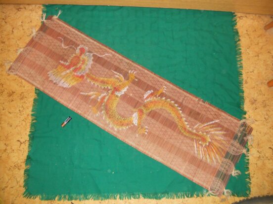 Бамбуковая соломка времён СССР, с китайскими или японскими (в целом восточными, азиатскими) мотивами — дракон. На счёт целостности есть вопросы…