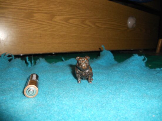 Статуэтка собаки — бульдога (или боксёра), из металла — шпиатр, или же дюраль, силумин, с покрытием «под бронзу» Есть недостатки…