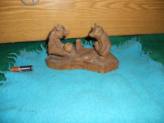 Деревянная резная (скорее всего заводская резьба) статуэтка — медведи играют в футбол, медвежата-футболисты (в интернете похожие назывались «На лесной поляне»…