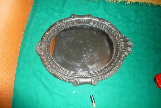 Классическое настенное овальное зеркало в металлической литой раме — силумин под бронзу. Размеры по раме — 45.5/35 см. Зеркальная часть…