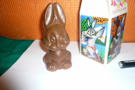 Детское фигурное туалетное мыло Зайчик, в родной коробке. Было завязано на веревку, её перерезали при мне, чтобы понять, что внутри…