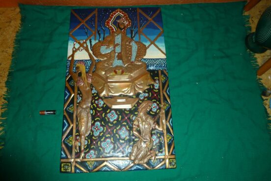 Чеканка, панно, сюжет что-то вроде Султан и танцовщицы, ещё возможные варианты — Визирь, вельможа и наложницы, гурии (?!) Большая, размеры…