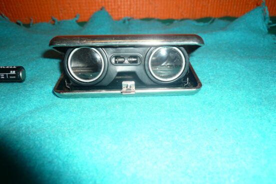 Бинокль театральный из СССР, 2.5х60, рабочий, колесико крутится, увеличение-уменьшение работает. Из недостатков — защелка держится неуверенно, периодически он самопроизвольно раскрывается…