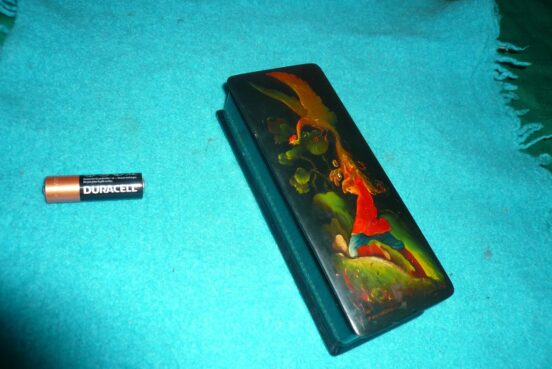Федоскинская лаковая шкатулка «Жар — птица». Папье-маше, лак, масло При правильном освещении хвост у птицы прямо огненный!) Ориентировочно 1970-1990 гг….