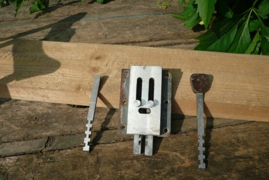 Замок ригельный из СССР, рабочий, + 2 ключа. Причина отказа от использования: очень чуткий к перекосам, после очередного перехода зима-лето…