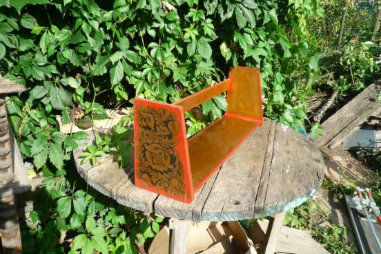 Полка с росписью в стиле хохлома. Возможно, советских времён. Сохран на фото, квартирного хранения. Размеры Д/В/Ш — 79/28/19 см.