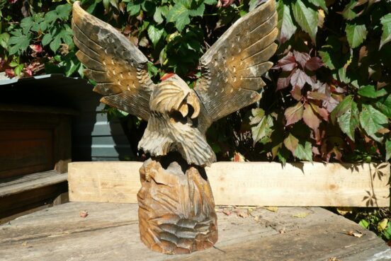 Резная деревянная скульптура орла, фигурка, статуэтка орёл деревянный. Фигура разборная — крылья съёмные! Предположительно СССР. Высота — порядка 60 см…