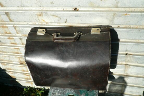 Старый кожаный (?) портфель, на защёлках. Возможно это кофр от чего-то или сумка под инструмент. Защёлки рабочие. Но точный возраст…