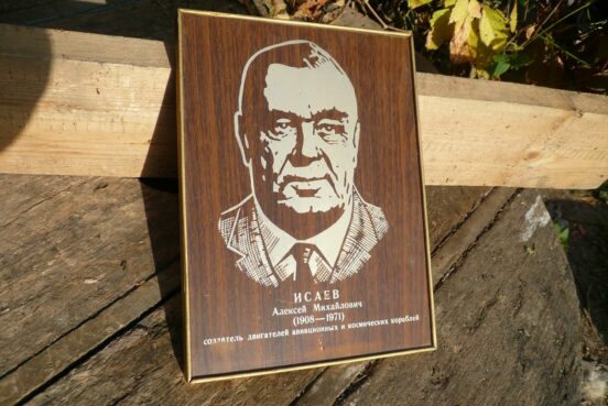 Панно, посвящённое советскому конструктору — Алексею Михайловичу Исаеву Размеры: 31.7/23.8 см. Материал основы — ДВП (ДСП ?) Есть повреждение изображения…
