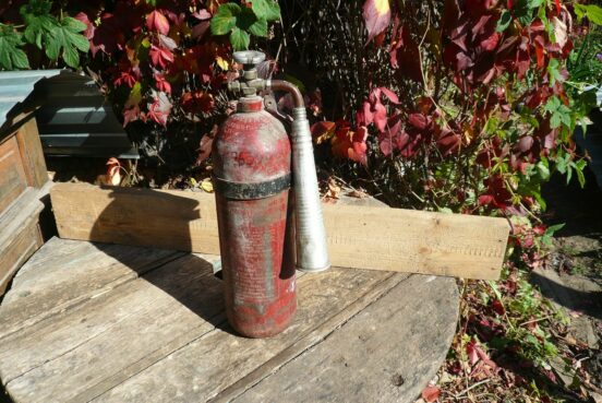 Огнетушитель углекислотно-снежный (так как раструб старого типа, он выдавал струю так называемого «углекислого снега»). Далее форму и материал раструба поменяли…