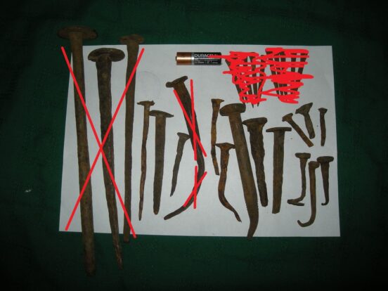 5 шт. — на 100 руб. Длина одного гвоздика — порядка 5-6 см. Есть версия, что это копытные гвозди, как…