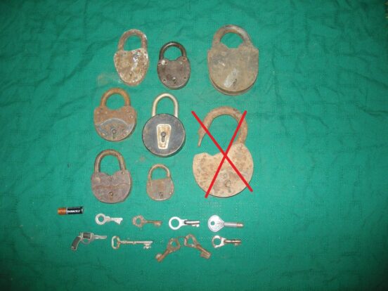 Аккуратный замой (крайний слева) — продан Замок с изображением льва — продан Аккуратный замок, с родным ключом, но всё заклёкло,…