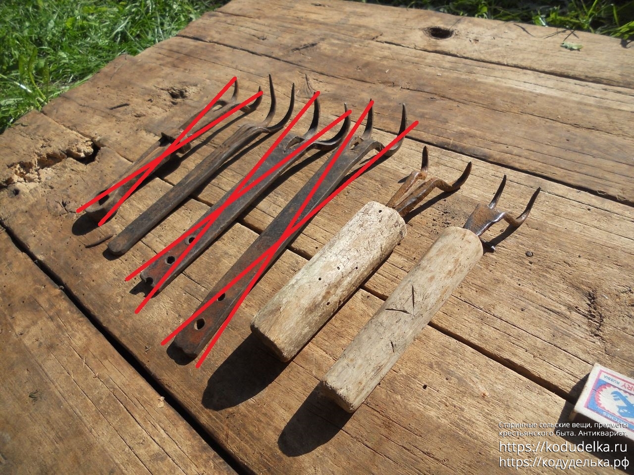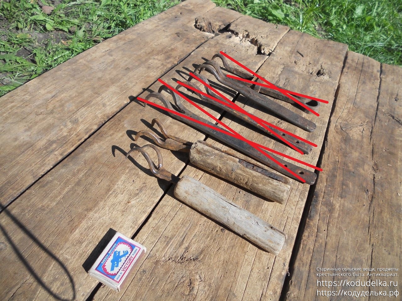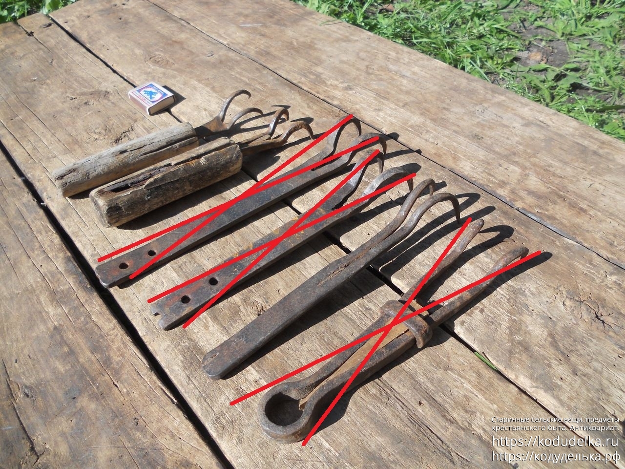 Все черты — кованые (две с деревянными ручками и 1 шт. «из пластинки»).