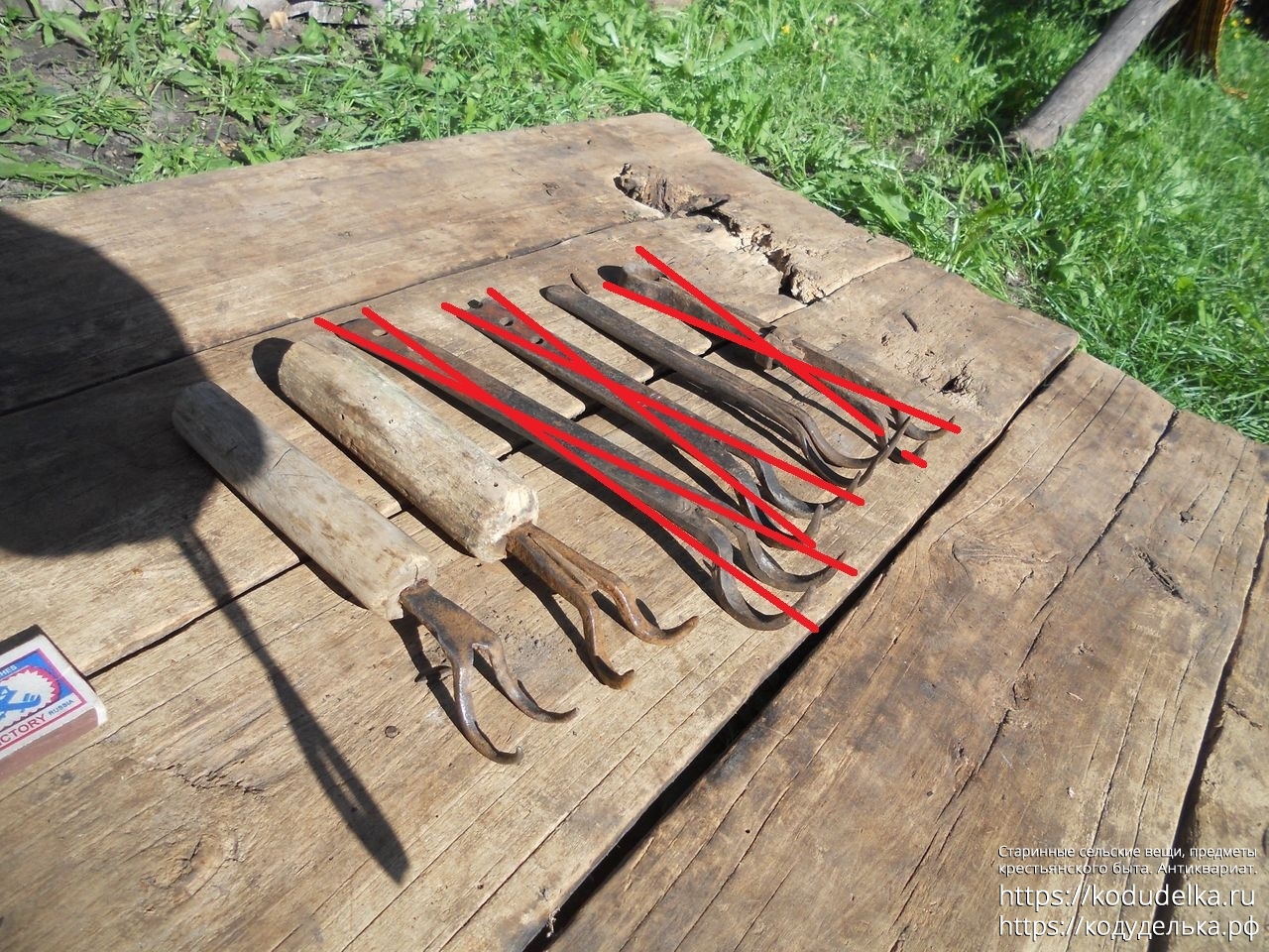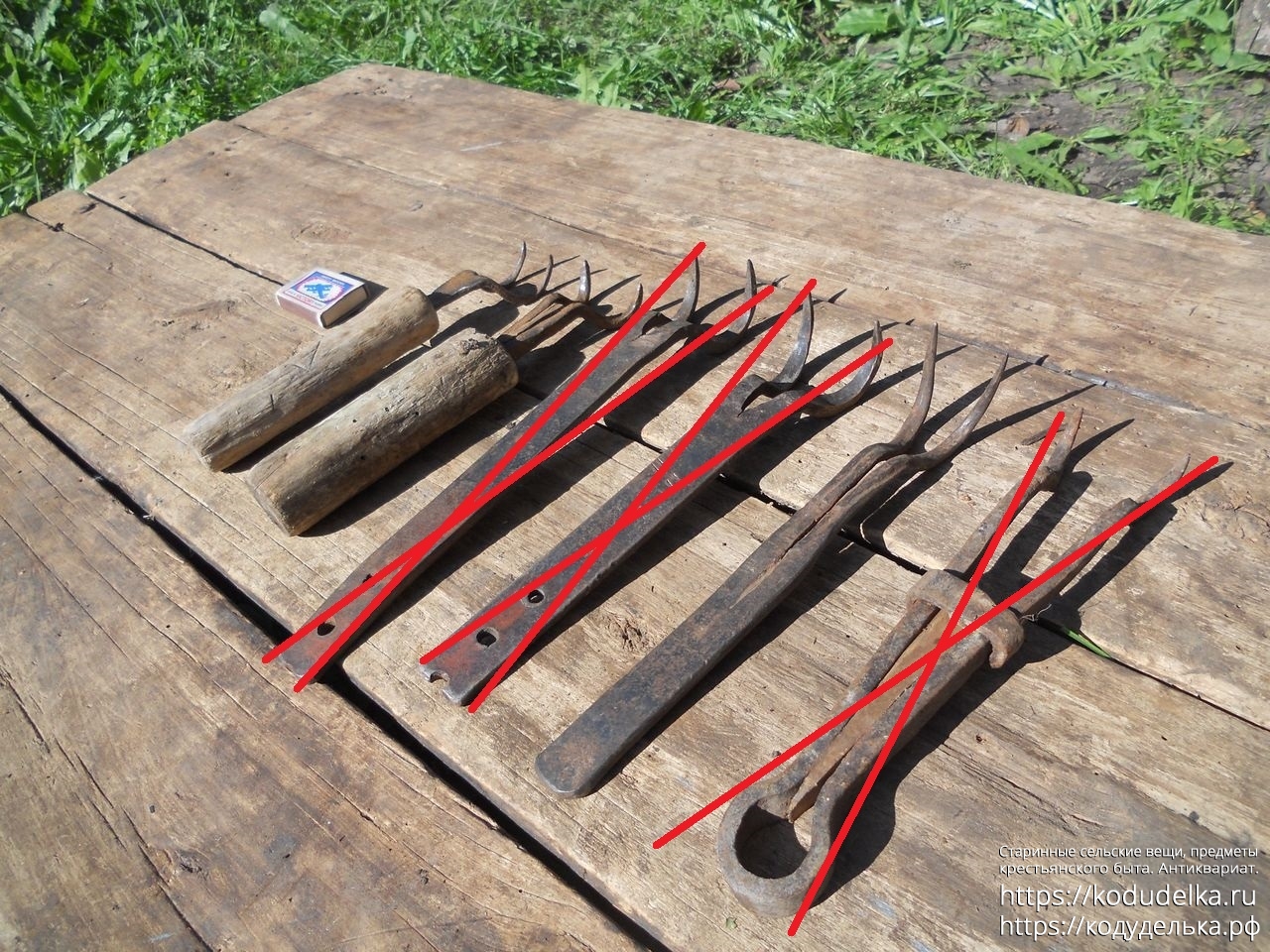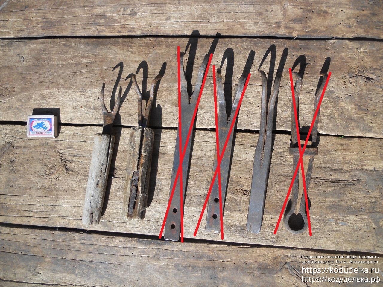 Все черты — кованые (две с деревянными ручками и 1 шт. «из пластинки»).